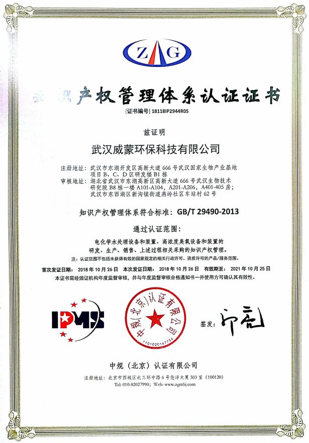 武漢威蒙環(huán)??萍加邢薰緞?chuàng)立于2011年,是一家位于武漢東湖國(guó)家自主創(chuàng)新示范區(qū)的國(guó)家高新技術(shù)企業(yè)。公司在電化學(xué)水處理、水電解制臭氧、水電解制氧制氫、磁分離等領(lǐng)域技術(shù)先進(jìn),其中“復(fù)極式電催化高級(jí)氧化電極制造技術(shù)”、“高濃度臭氧制備技術(shù)”是兩項(xiàng)中國(guó)首創(chuàng)的工業(yè)化技術(shù)。截至2015年底,公司已獲得包括5項(xiàng)發(fā)明專利在內(nèi)的20余項(xiàng)專利,以及大量的非專利技術(shù)。通過(guò)此次貫標(biāo)的成功認(rèn)證,完善了其整體知識(shí)產(chǎn)權(quán)管理體系的標(biāo)準(zhǔn)化、規(guī)范化與系統(tǒng)化,進(jìn)一步提升了企業(yè)的市場(chǎng)競(jìng)爭(zhēng)力!